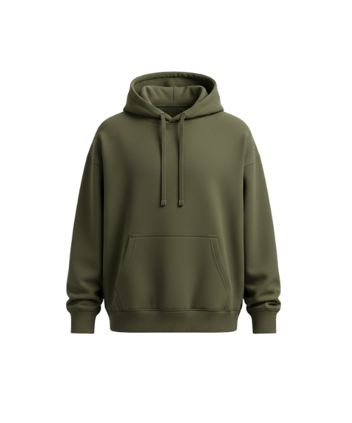 An olive green hoodie inspired by streetwear fashion. Soft fleece texture and stylish color make it ideal for winter outings.